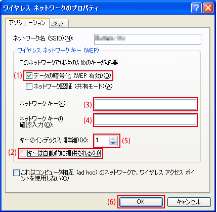 ※WEPキーは数字「0〜9」、英字「A〜F、a〜f」の16進数の入力になります。