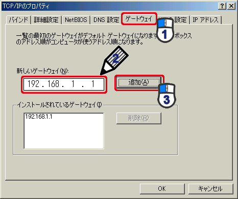 (2)「新しいゲートウェイ」に「192.168.1.1」と入力します。
