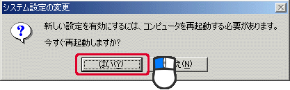 [はい]をクリックしてパソコンを再起動します。