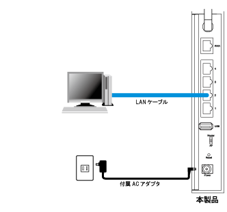 「アクセスポイントとして使用するとき」の「STEP2.設定用コンピュータとの接続」を参照し、本製品とコンピュータを接続します。