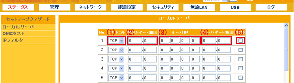(2)「WANポート範囲」にインターネット側から見た送信先ポート番号を入力します。