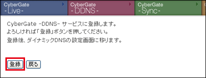 ※あらかじめ「CyberGate - DDNS -」の登録を済ませておいてください。登録方法は下記を参照してください。