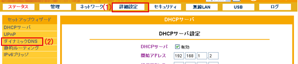 ※あらかじめ「DynDNS」の登録を済ませておいてください。登録方法は弊社FAQ情報を参照してください。
