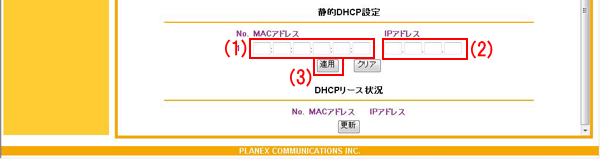 (1)IPアドレスを割り当てるコンピュータのMACアドレスを入力します。