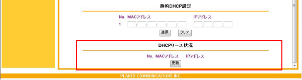 LAN内の特定のMACアドレスに対しIPアドレスを割り当てます。最大32個まで設定できます。
