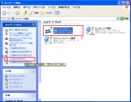 タスクメニューの[ネットワーク接続の管理]をクリックしてください