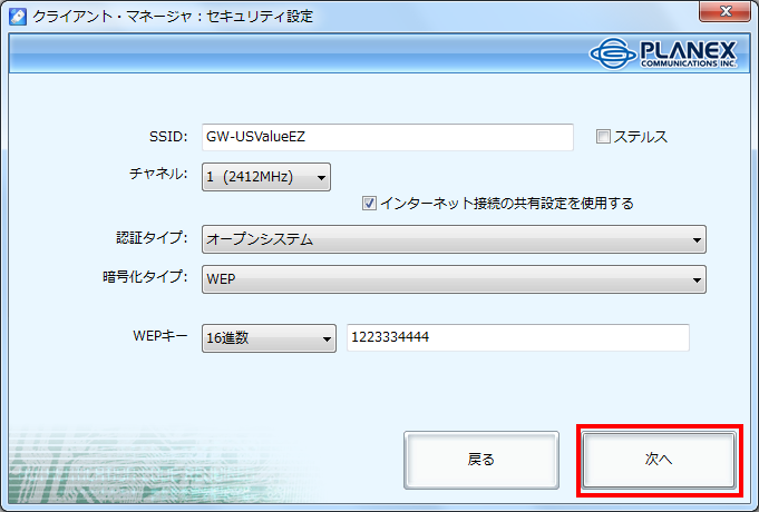 1. アクセスポイントの設定それぞれの設定が完了したら、[次へ]をクリックして下さい。